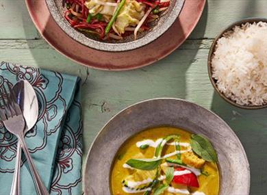 The menu features a wide variety of much-loved Thai dishes, celebrating delicious fresh produce from the sea and land flavoured with Thailand's abundance of herbs, spices and vegetables. We offer vegetarian and vegan options and a fantastic value lunch menu with sharing plates, noodles and Thai soups starting from £4.50. An evening menu serves up classics such as Massaman Curry and Pad Thai alongside hero Giggling dishes such as Sticky Chicken and Salt & Pepper Squid. The drinks menu features perfect pairing wines plus delicious cocktails from Margaritas to Mojitos – all served with a Thai twist! Plus there's a kids' menu for 'Squidlets'.