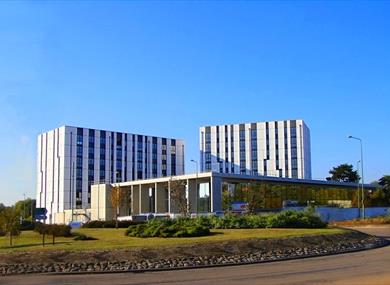 Parking - There are plenty of cycle parking and designated parking spaces for Blue Badge holders at the front of the building.Pay & Display spaces are available by the football ground near the library on James Whatman Way (for fees check the Maidstone Borough Council car parks webpage). There are further short term Pay & Display spaces across the road in the White Rabbit car park. The nearest long term car parks are Fremlin Walk and the Maidstone East railway station car park (5 minutes walk away). Buses - Stops for routes 101, 150 and 155 are situated just beyond the right-hand side of the building and on the opposite side of the dual-carriage way.