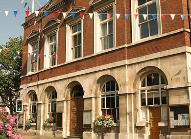 Maidstone Town Hall is a fine Georgian building originally dated 1763 used as the Magistrate's Courts. Above the richly decorated council chamber is the old prison cell where you can still see graffiti carved by prisoners awaiting deportation.