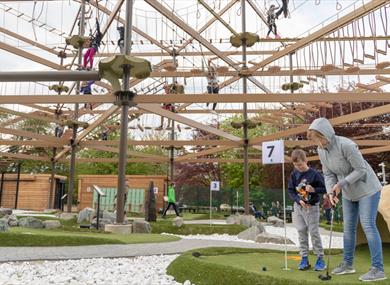 Welcome to Maidstone’s Mote Park Outdoor Adventure! Whether you’re looking to burn off some excess energy, or to lose yourself in an adventure – Mote Park Adventure have outdoor activities to keep the whole family entertained. Chose from the 32ft Sky Trail, 32ft Climbing Wall and off-roading Segway Terrain, and you can always finish off your day with 9 holes of Dino Mini Golf!