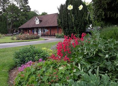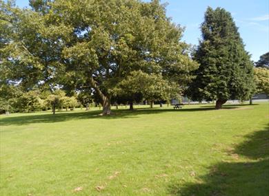 A beautiful park with formal gardens and a pavilion. The site is split roughly 50/50 either side of Armstrong Road.
